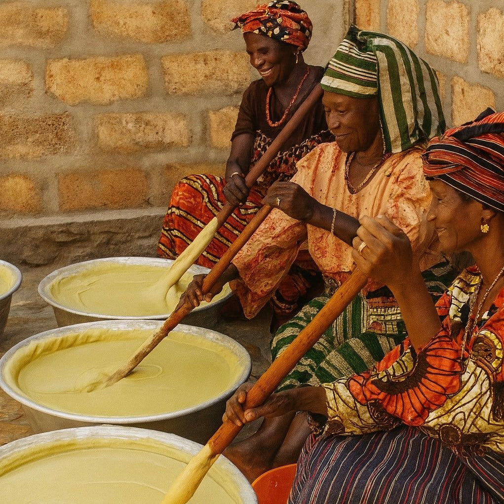 This series of photos documents the meticulous transformation, turning the raw Shea nut into the rich, nourishing “gold” prized globally for its incredible skincare benefits.